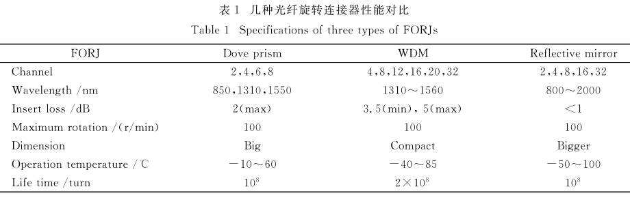 摘要 光纖滑環(huán)經(jīng)過(guò)近30年的發(fā)展,技術(shù)上已經(jīng)取得了很大的進(jìn)步,并趨于成熟。 對(duì)光纖旋轉(zhuǎn)連接器的主要功能及其最新進(jìn)展進(jìn)行了綜述,介紹了道威棱鏡式、波分復(fù)用式和反射鏡式3類多通道光纖連接器的原理、技術(shù)和特點(diǎn),對(duì)3類系統(tǒng)進(jìn)行了比較,列出各類連接器的優(yōu)缺點(diǎn)。 最后對(duì)光纖滑環(huán)適用場(chǎng)合進(jìn)行了簡(jiǎn)要介紹。